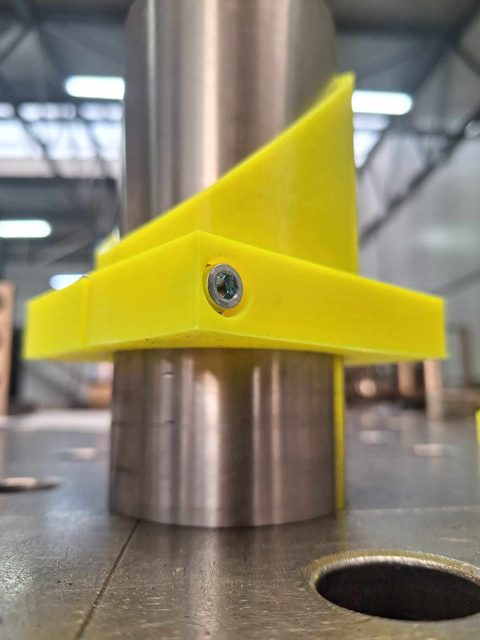 Szablon blokowany śrubą . Zapewnia pewny montaż , bez ryzyka przesunięcia .