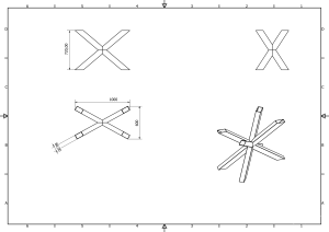 Szablony do stołu "Pająk". Dedykowany do blatu okrągłego lub kwadratowego. Wymiary zewnętrzne nóg 600x1000x720. Szablon przeznaczony do profili 80x80.
