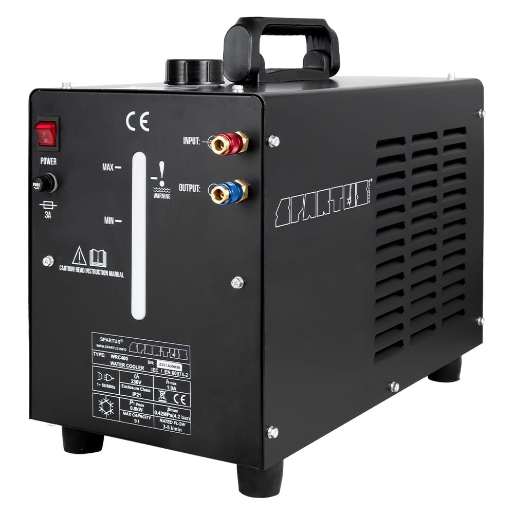 Chłodnica SPARTUS® WRC400 przeznaczona jest do chłodzenia uchwytów spawalniczych. Charakteryzuje się dużą wydajnością. Pojemnik na płyn chłodzący ma pojemność 9l i wyposażony