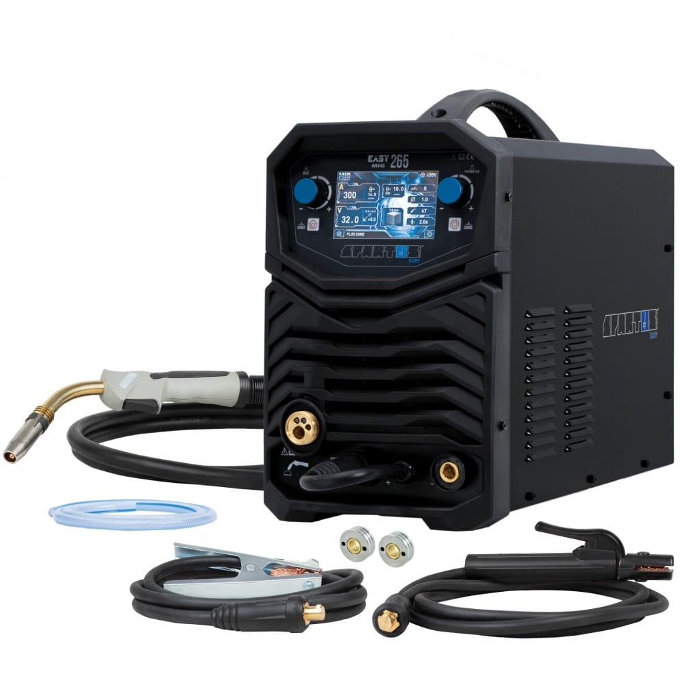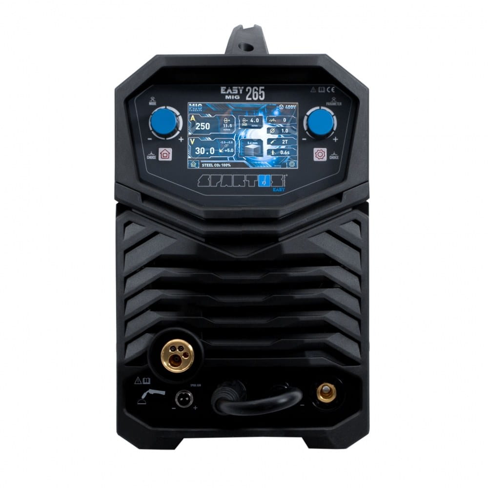SPARTUS® EasyMIG 265 to nowoczesny, inwertorowy półautomat spawalniczy, skonstruowany w oparciu o tranzystory IGBT. Umożliwia spawanie elektrodą topliwą w osłonie gazów obojętnych i aktywnych (MIG/MAG), spawanie elektrodą otuloną (MMA) oraz spawanie TIG Lift z zajarzeniem łuku przez potarcie. Dodatkowo urządzenie, dzięki możliwości zmiany biegunowości spawania, umożliwiają spawanie drutem samoosłonowym bez gazu.