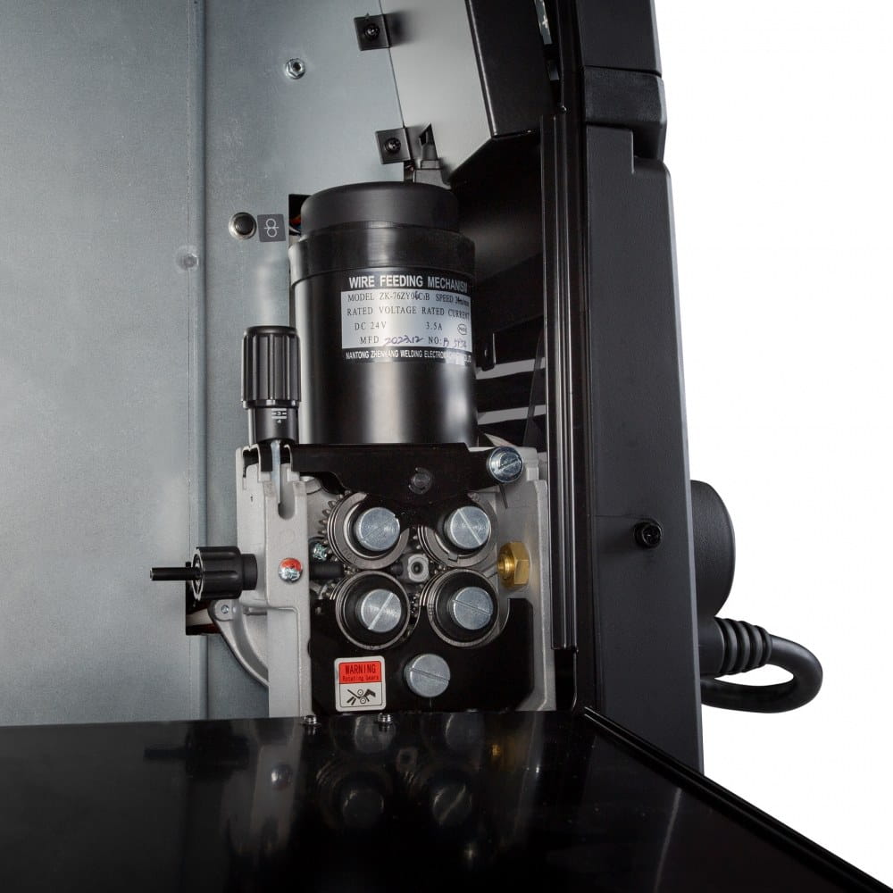 Możliwość montażu dużej szpuli oraz czterorolkowy podajnik w SPARTUS® EasyMIG 317DP zapewnia stabilne podawanie drutu spawalniczego. Urządzenie doskonale sprawdzi się zarówno w zakładach przemysłowych, jak i w mniejszych warsztatach, oferując wszechstronność bez kompromisów w zakresie wydajności.