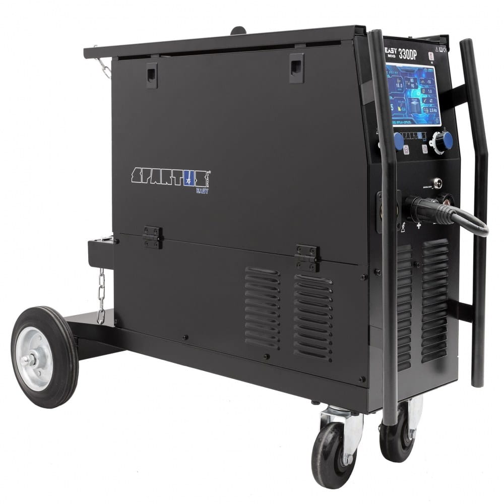 SPARTUS® EasyMIG 330 DP To nowoczesny, inwertorowy półautomat spawalniczy, skonstruowany w oparciu o tranzystory IGBT. Umożliwia spawanie elektrodą topliwą w osłonie gazów obojętnych i aktywnych (MIG/ MAG), spawanie elektrodą otuloną (MMA) oraz spawanie TIG Lift z zajarzeniem łuku przez potarcie. Dodatkowo urządzenie, dzięki możliwości zmiany biegunowości spawania, umożliwia spawanie drutem samoosłonowym bez gazu.
