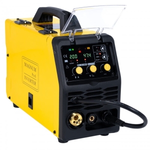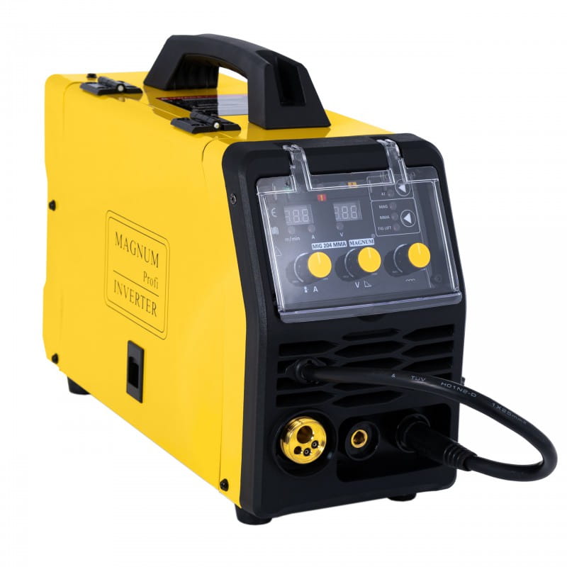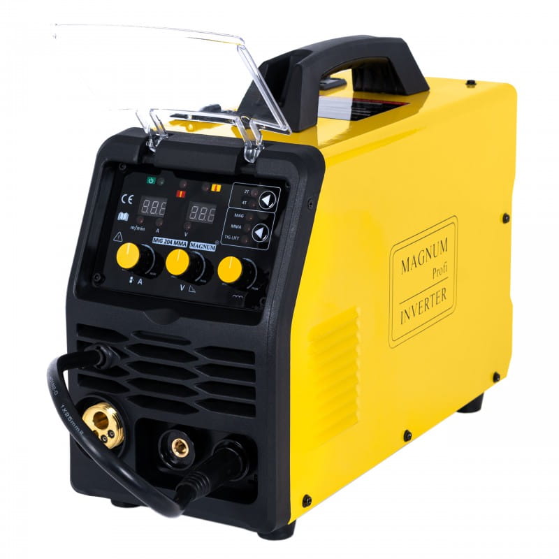 Spawarka MAGNUM MIG 204 MMA to niewielkie, profesjonalne urządzenie spawalnicze, przeznaczone do spawania metodą MIG/MAG, MMA i TIG LIFT. Urządzenie służy do ręcznego, elektrycznego spawania stali niskowęglowej, niskostopowej (MAG), stalistopowych (MIG) oraz aluminium i jego stopów.