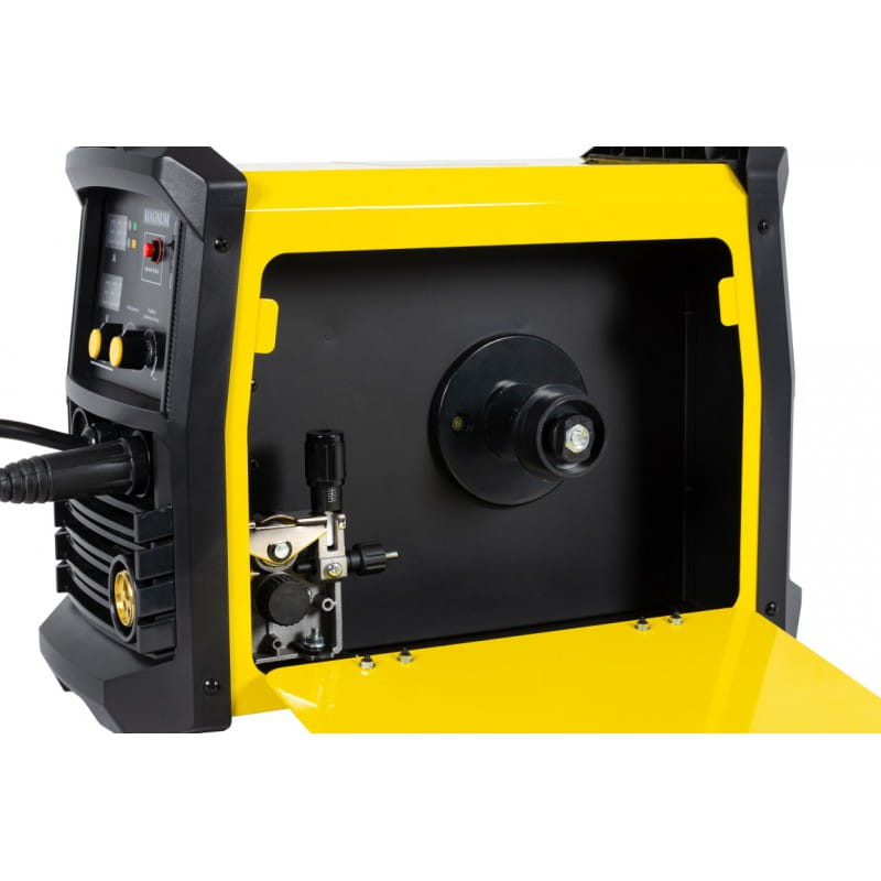 Urządzenie posiada płynną regulacje parametrów spawania, wyposażone jest w przeciążeniowy układ zabezpieczenia termicznego, zapobiegający nadmiernemu przegrzewaniu się. Zastosowany w urządzeniu 2-rolkowy podajnik drutu z gniazdem "euro złącze" pozwala na podłączenie różnych typów uchwytów spawalniczych. Spawarka charakteryzuje się szerokim zakres zastosowań, dedykowana jest do wszelkiego rodzaju prac spawalniczych w gospodarstwach domowych, warsztatach ślusarskich, warsztatach naprawczych itp.
