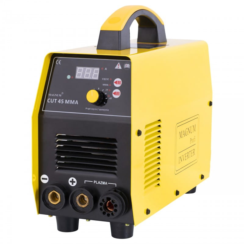 Przecinarka plazmowa marki MAGNUM CUT 45 przeznaczone jest do ręcznego cięcia plazmą powietrzną elementów przewodzących prąd elektryczny, wykonanych ze stali węglowych i stopowych, aluminium i jego stopów, mosiądzu, miedzi a także żeliwa oraz spawania elektrodą otuloną MMA.
