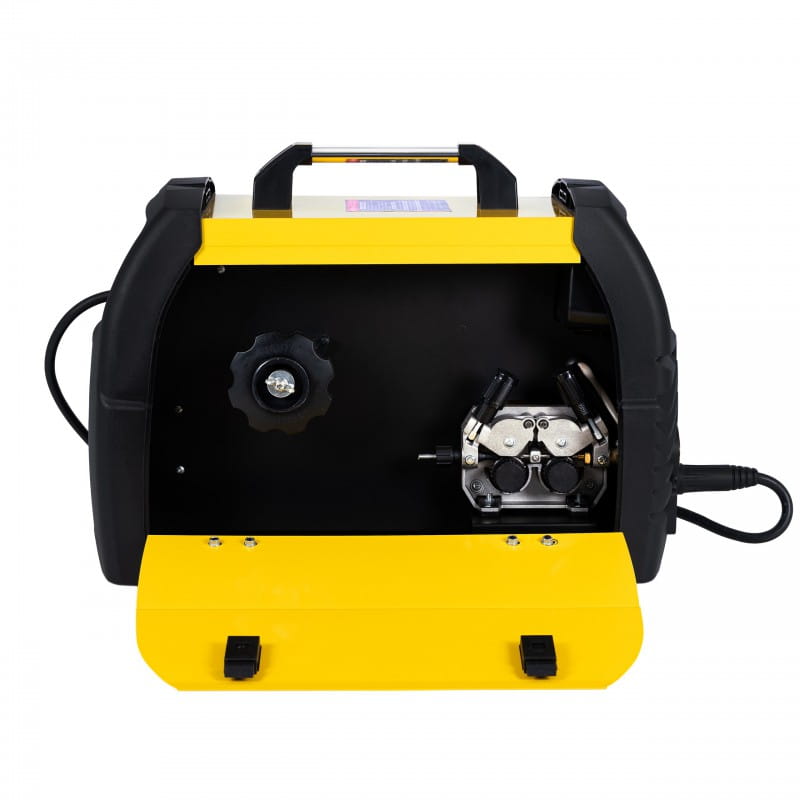 ✅ Komfort użytkowania – cztero-rolkowy podajnik drutu (4x4) gwarantuje precyzyjne podawanie drutu, co przekłada się na lepszą jakość spoin i wygodniejszą pracę nawet przy długich spawach.