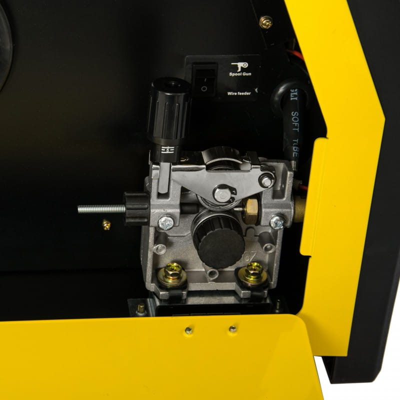 Urządzenie posiada płynną regulacje parametrów spawania, wyposażone jest w przeciążeniowy układ zabezpieczenia termicznego, zapobiegający nadmiernemu przegrzewaniu się. Zastosowany w urządzeniu 2-rolkowy podajnik drutu z gniazdem "euro złącze" pozwala na podłączenie różnych typów uchwytów spawalniczych.
