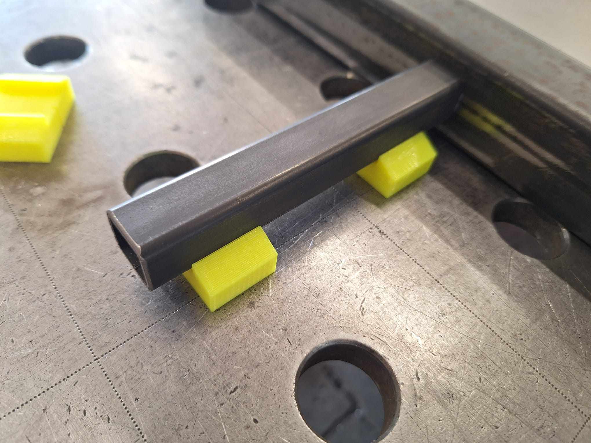 Pozycjoner dystansowy to przyrząd, który usprawnia prace spawalnicze i monterskie. Szczególnie przydatny podczas prac na stole spawalniczym. Pozwala w bardzo dokładny sposób pozycjonować kształtowniki względem siebie. W zależności od zastosowanego rozmiaru, możemy kształtowniki pozycjonować w osi lub z przesunięciem od osi. Jeśli potrzebujesz dystansów o innych wymiarach, skontaktuj się z nami.