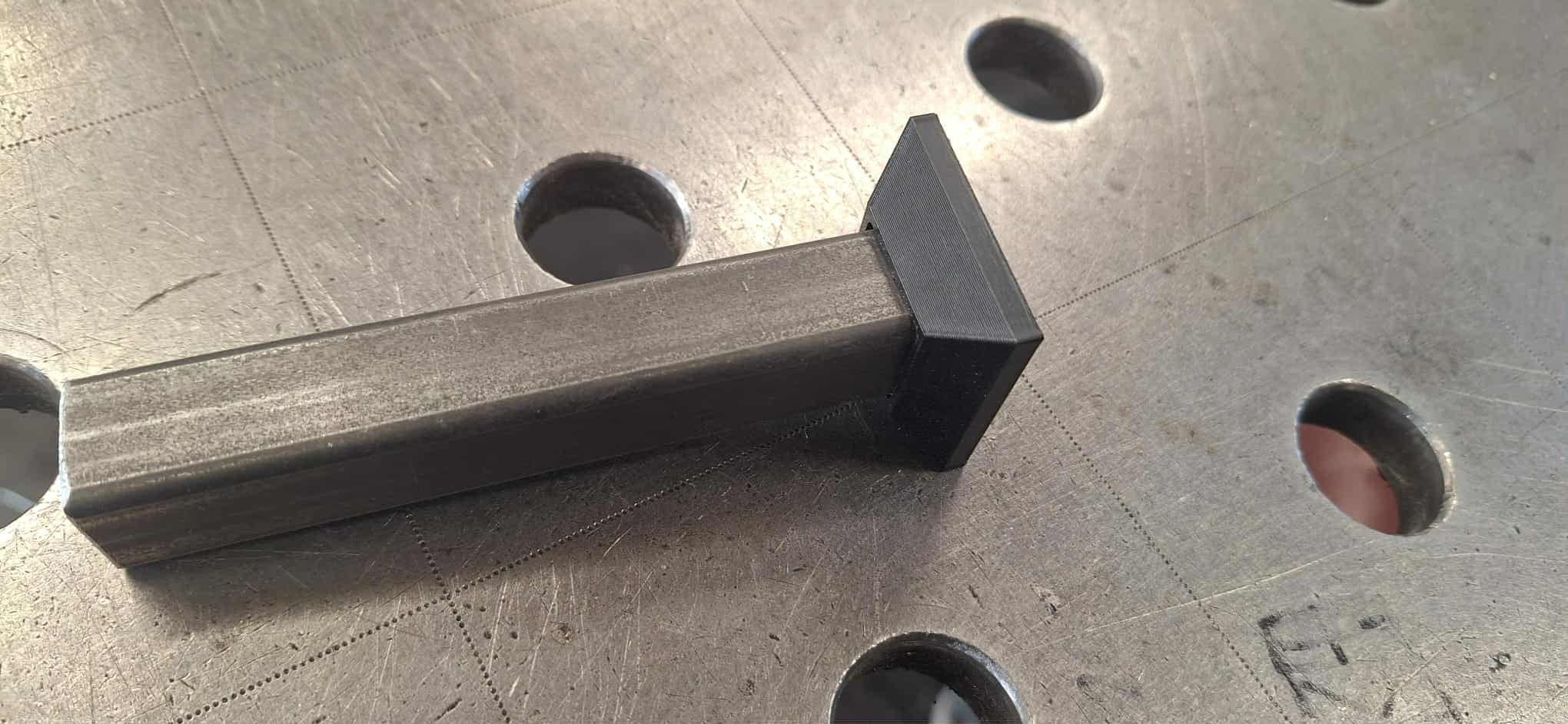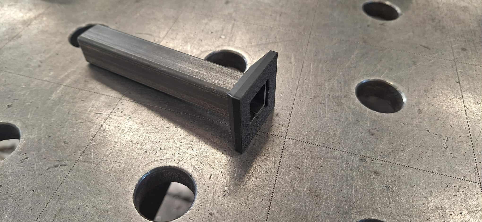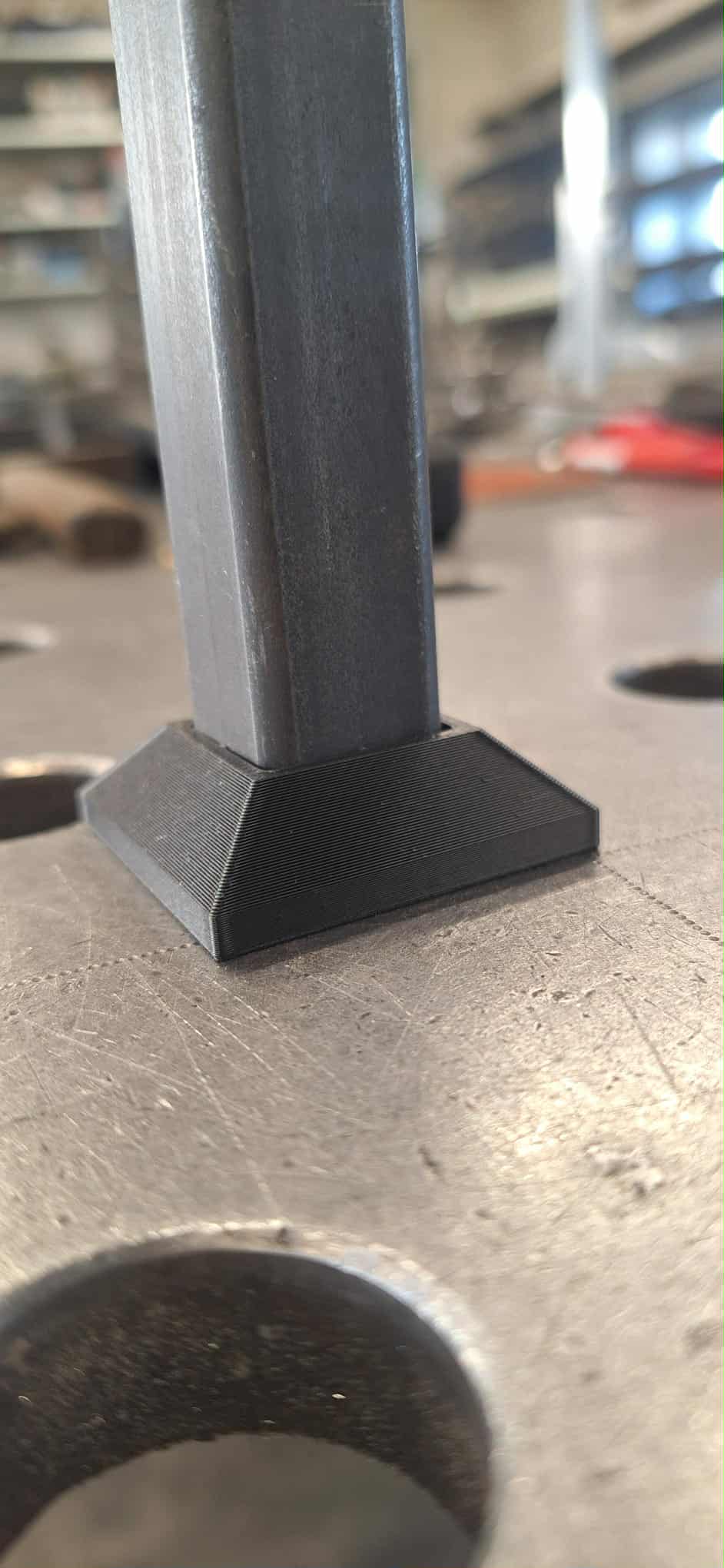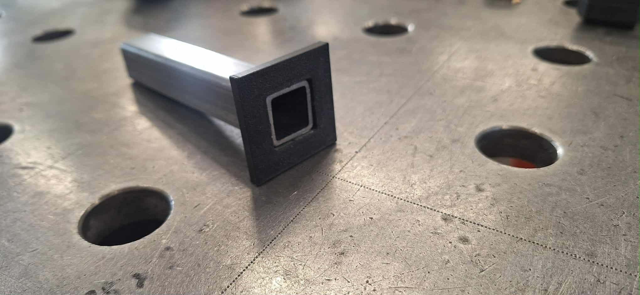Estetyczna i solidna rozeta przelotowa skośna wykonana metodą druku 3D – idealna do balustrad w stylu HARFA oraz innych nowoczesnych konstrukcji stalowych. Rozeta została zaprojektowana pod profil 20x20 mm.