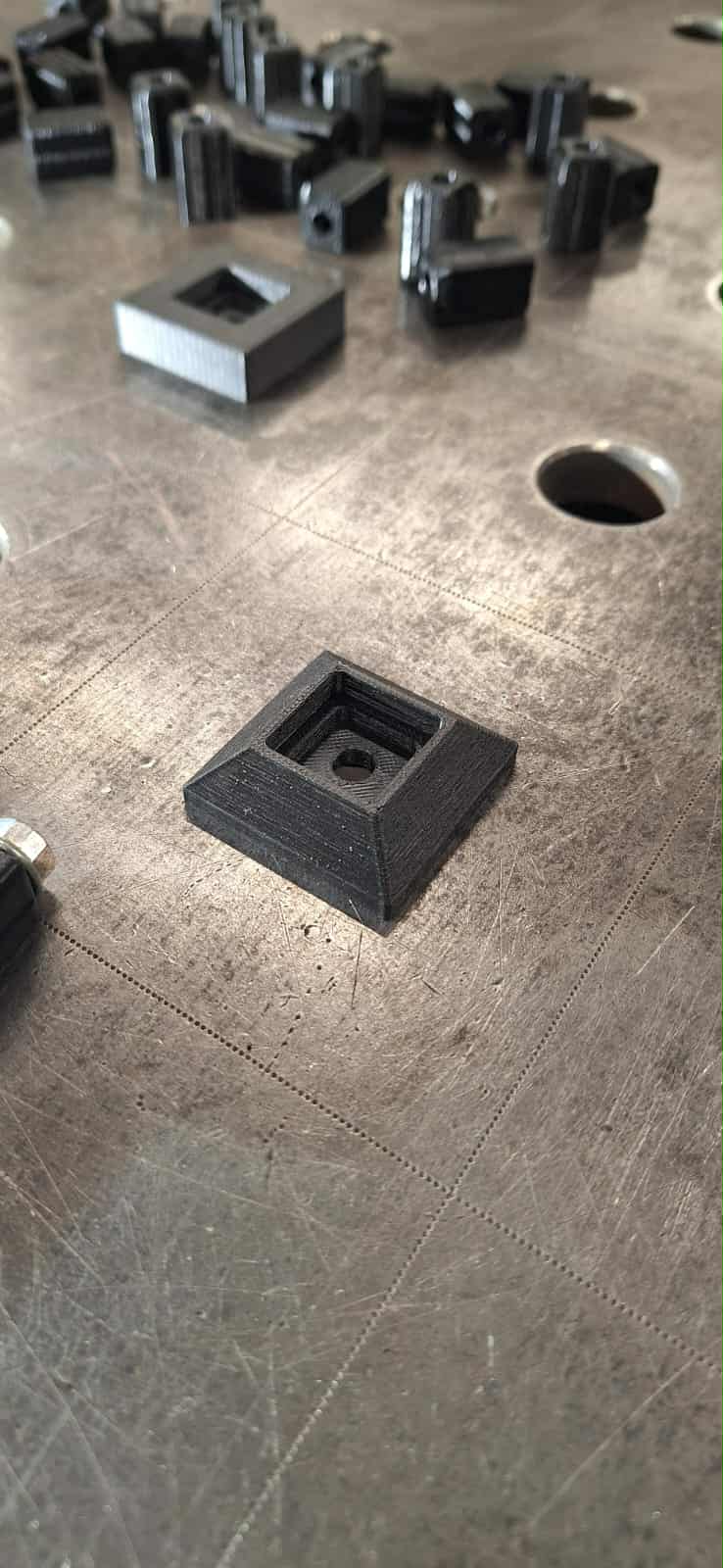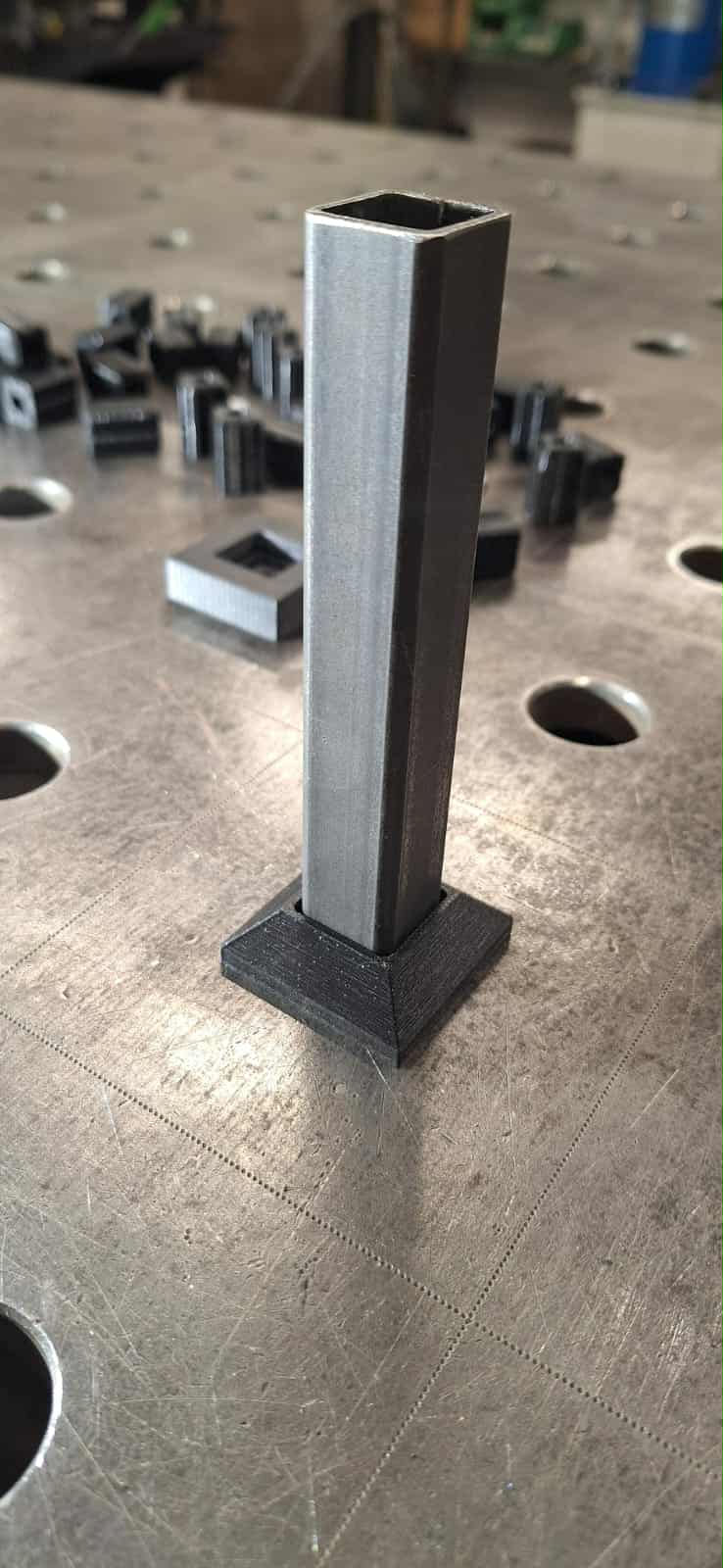 Estetyczna i solidna rozeta skośna wykonana metodą druku 3D – idealna do balustrad w stylu HARFA oraz innych nowoczesnych konstrukcji stalowych. Rozeta została zaprojektowana pod profil 20x20 mm i posiada centralny otwór montażowy fi 6 mm, co ułatwia szybki i precyzyjny montaż. Prawidłowy montaż rozety tylko z zastosowaniem pinu montażowego!!