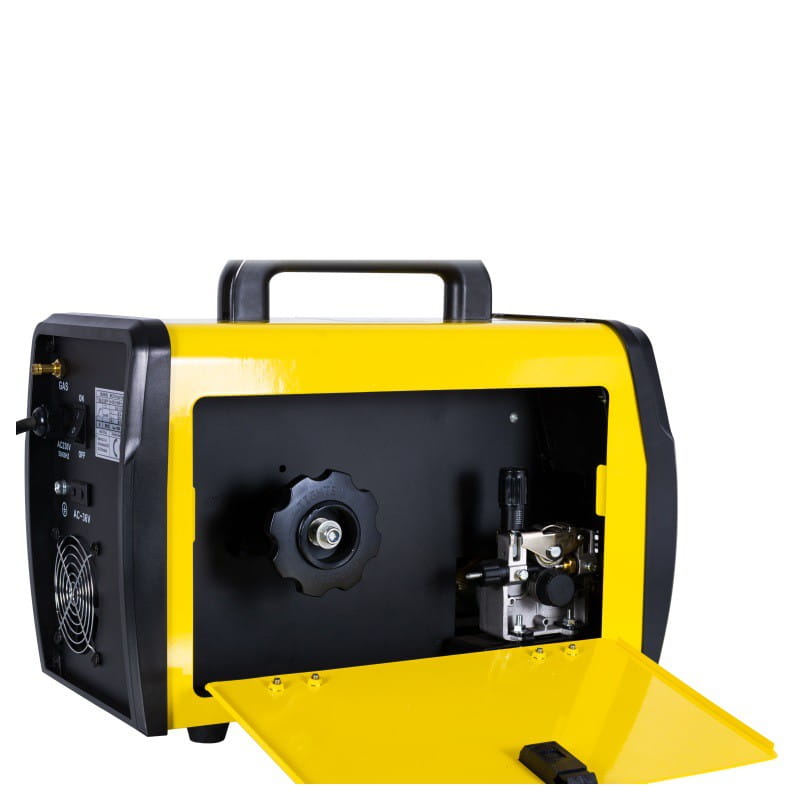 Urządzenie posiada płynną regulacje parametrów spawania, wyposażone jest w przeciążeniowy układ zabezpieczenia termicznego, zapobiegający nadmiernemu przegrzewaniu się. Spawarka wyposażona jest w 2-rolkowy podajnik drutu z gniazdem "euro złącze" co pozwala na podłączenie różnych typów uchwytów spawalniczych.