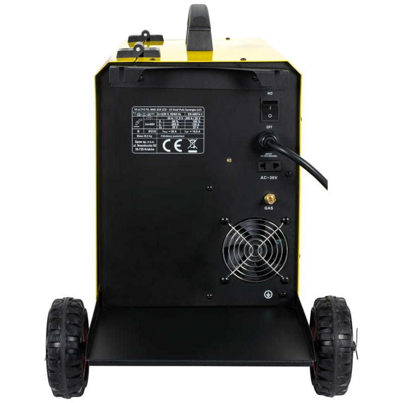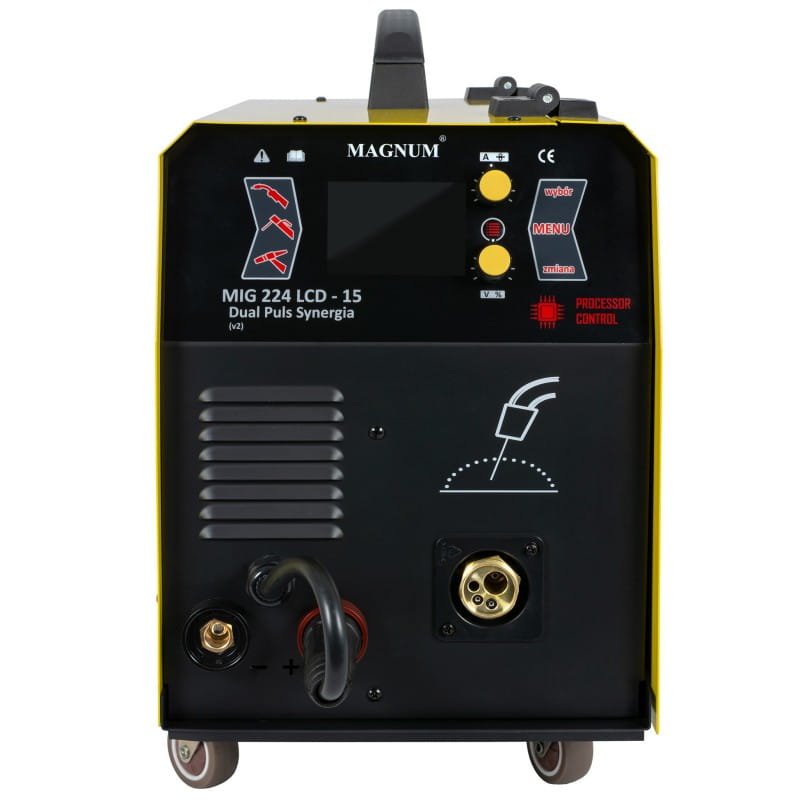 Urządzenie MAGNUM MIG 224/15 LCD DUAL PULS V2 w odświeżonej wersji z nowym wyświetlaczem oraz oprogramowaniem jest lekkim przenośnym półautomatem spawalniczym zasilanym z sieci jednofazowej 230V o maksymalnym prądzie spawania 200A.