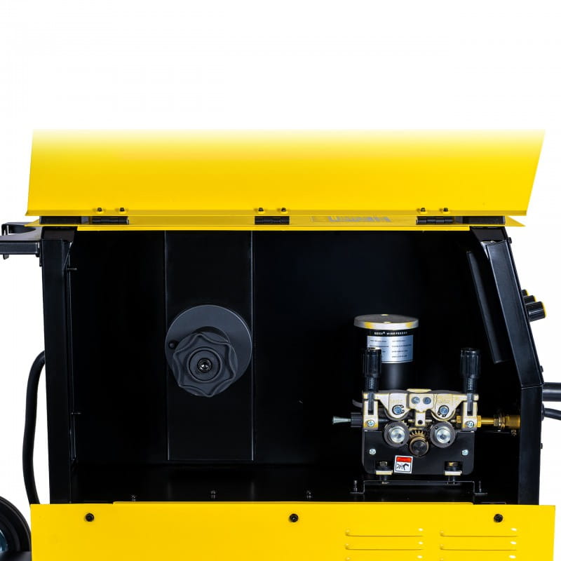 ✅ Zoptymalizowany podajnik drutu: 4-rolkowy podajnik drutu zapewnia niezawodny i stabilny posuw drutu, co wpływa na równomierne i profesjonalne wykonanie spoin.