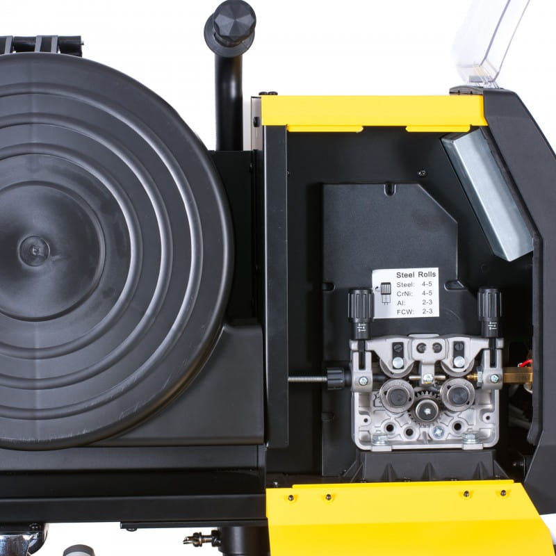 Urządzenie wyposażone jest w intuicyjny, łatwy w obsłudze panel sterowania, umożliwia wybór średnicy drutu, rodzaj materiału spawanego, rodzaj gaz osłonowego oraz regulację parametrów napięciowo - prądowych. Zastosowana funkcja synergii pozwala na szybki i precyzyjny dobór parametrów spawania.