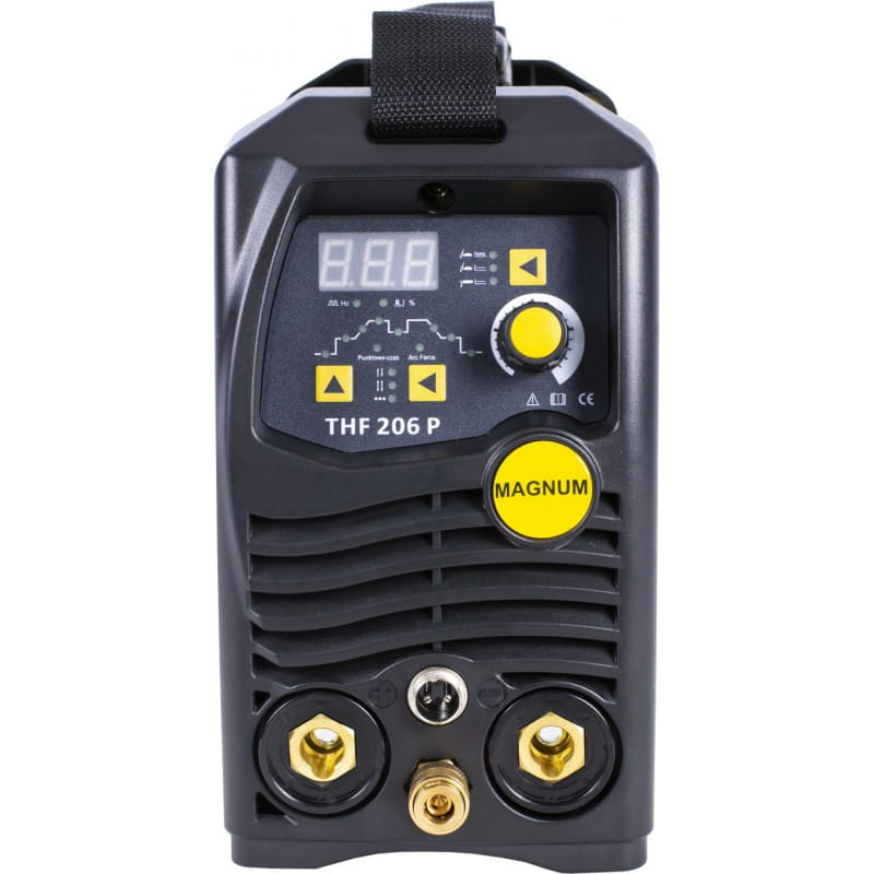 Urządzenie THF 206P marki MAGNUM jest lekką, przenośną spawarką inwertorową przeznaczoną do spawania metodą TIG HF (z bezstykowym zajarzaniem łuku spawalniczego) prądem stałym DC. zapewnia doskonałą wydajność w spawaniu stali niestopowej, niskostopowej, wysokostopowej, tytanu oraz innych spawalnych metali i stopów. Urządzeniem można również spawać metodą MMA z wykorzystaniem topliwych elektrod otulonych.