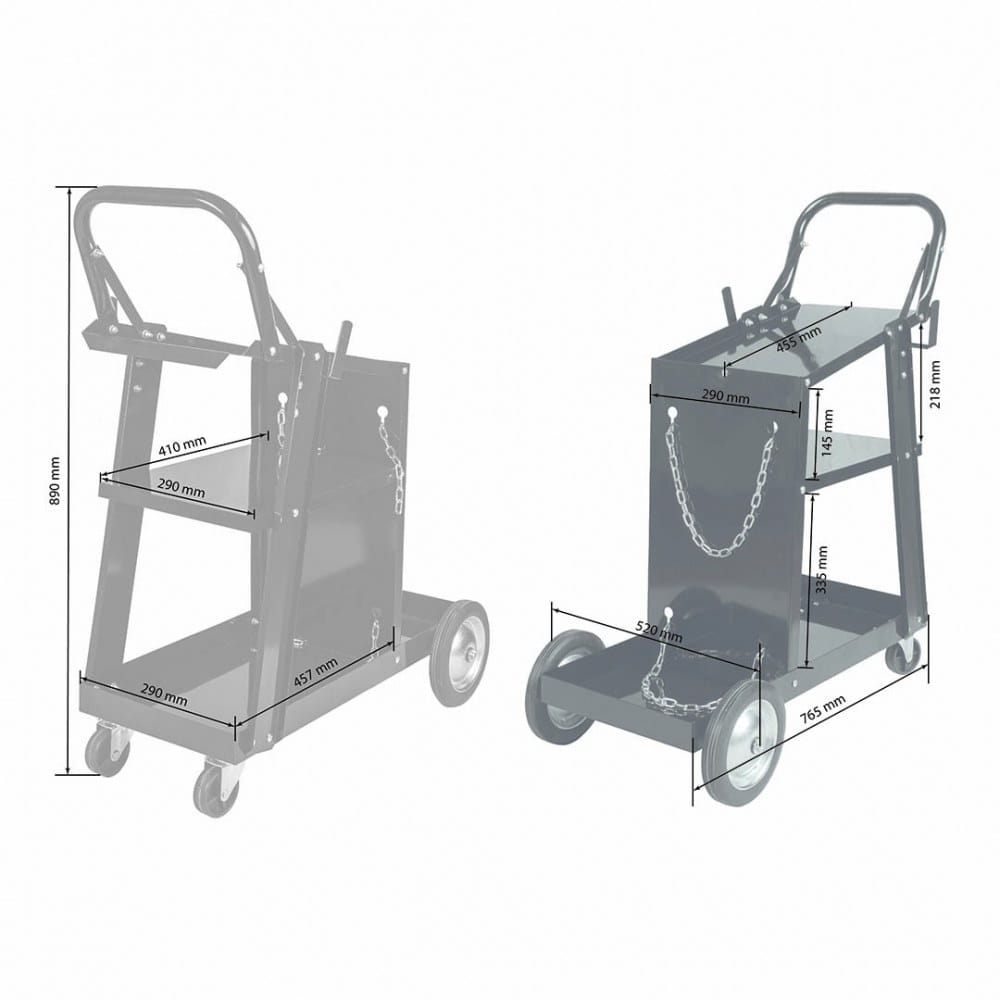 SPARTUS® TR-130 to wielofunkcyjny, mobilny wózek na kółkach, wyposażony w trzy półki, które umożliwiają organizację urządzeń i akcesoriów spawalniczych. Dodatkowo posiada specjalne miejsce na butlę z gazem, zapewniając bezpieczny transport całego wyposażenia. Dzięki praktycznemu układowi, SPARTUS® TR-130 oferuje wygodę i efektywność, usprawniając pracę w warsztatach.